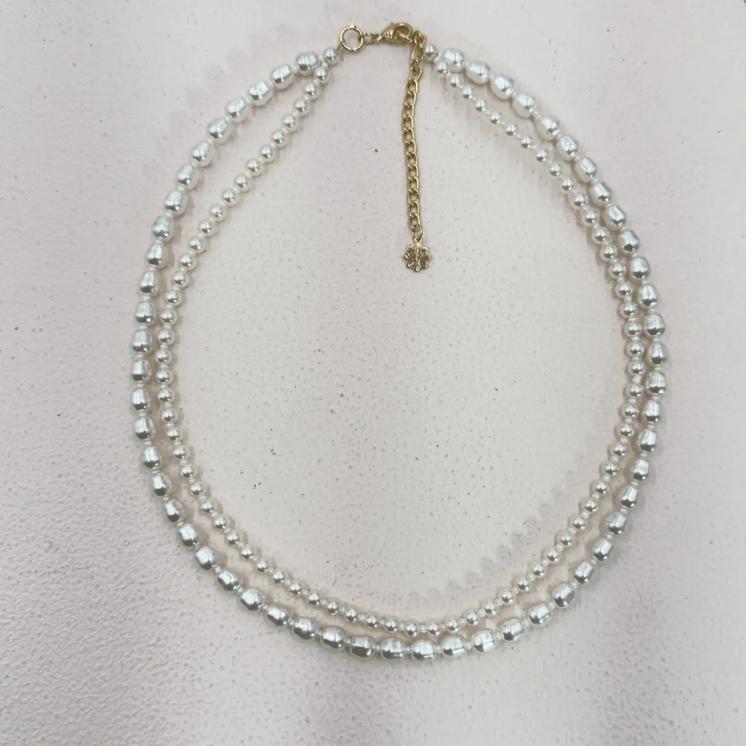 Introducing the TFC Royale Pearl 2 Layered Necklace—a luxurious blend of elegance and opulence, perfect for evening soirées and holiday celebrations. This exquisite necklace features two layers of lustrous pearls, gracefully cascading with regal allure. Whether you're attending a glamorous evening event or embracing the festive spirit of the holidays, this versatile accessory promises to elevate your look with its timeless sophistication and undeniable charm, making it the perfect choice for creating unforgettable moments and adding a touch of refined glamour to any ensemble.