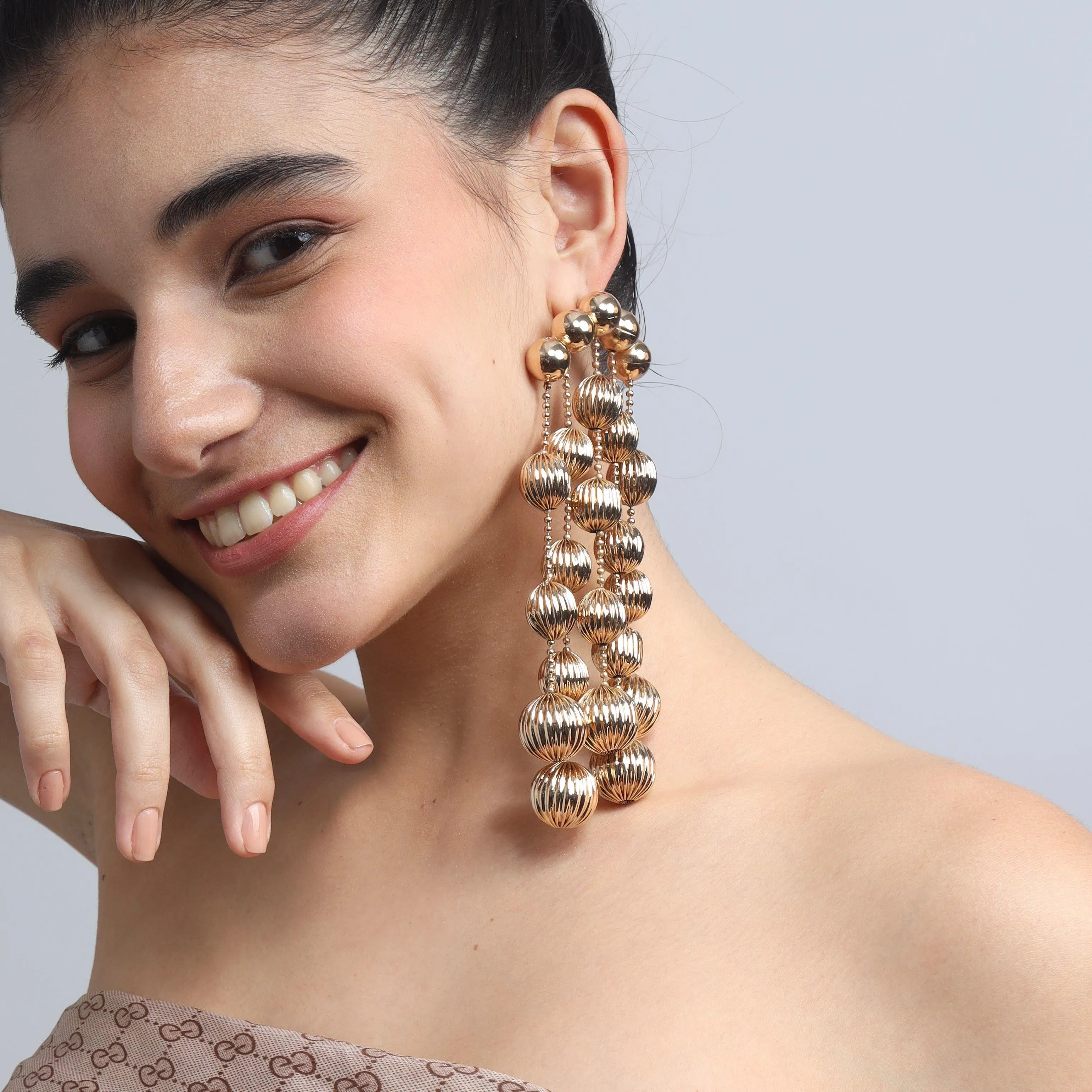 Illuminate your evenings and holiday festivities with the captivating allure of TFC Vortex Bold Bead Earring. These exquisite Earrings feature a bold and striking vortex design meticulously crafted and plated in radiant gold. Versatile and stylish, these stud earrings effortlessly enhance any ensemble with their bold statement and sophisticated charm.